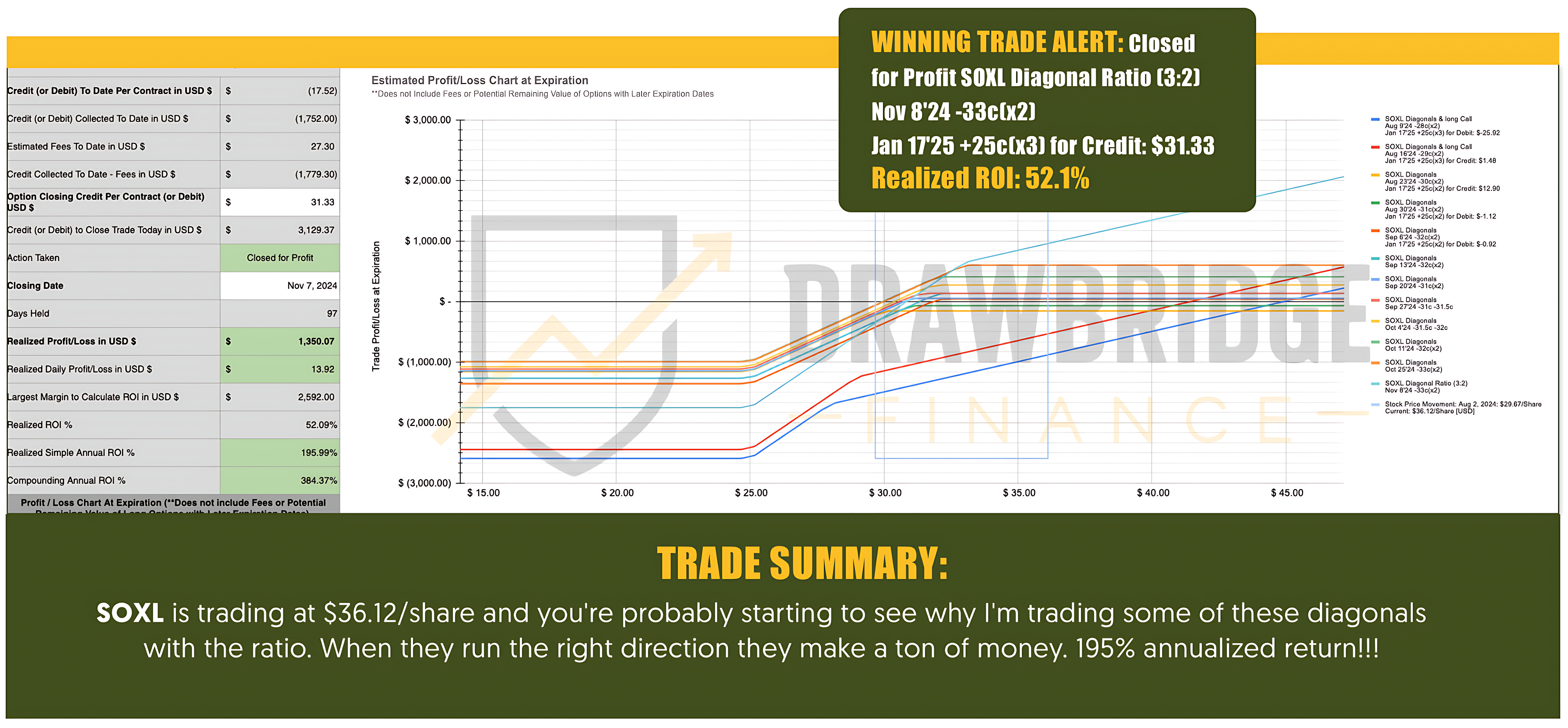 Get access to real-time Option and Stock trade alerts in the private Drawbridge Traders Club!